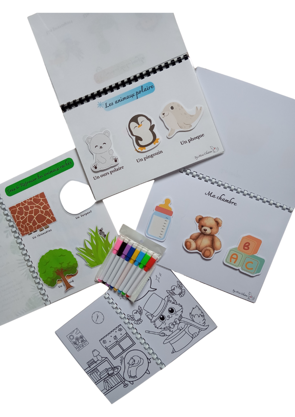 Je vous présente ce pack pour les tout-petits deux imagiers exclusivement sur les animaux, et l'autre sur la découverte avec ma chambre la salle de bain les fruits et légumes et cetera, avec le livret d'activité de la savane avec 8 activités