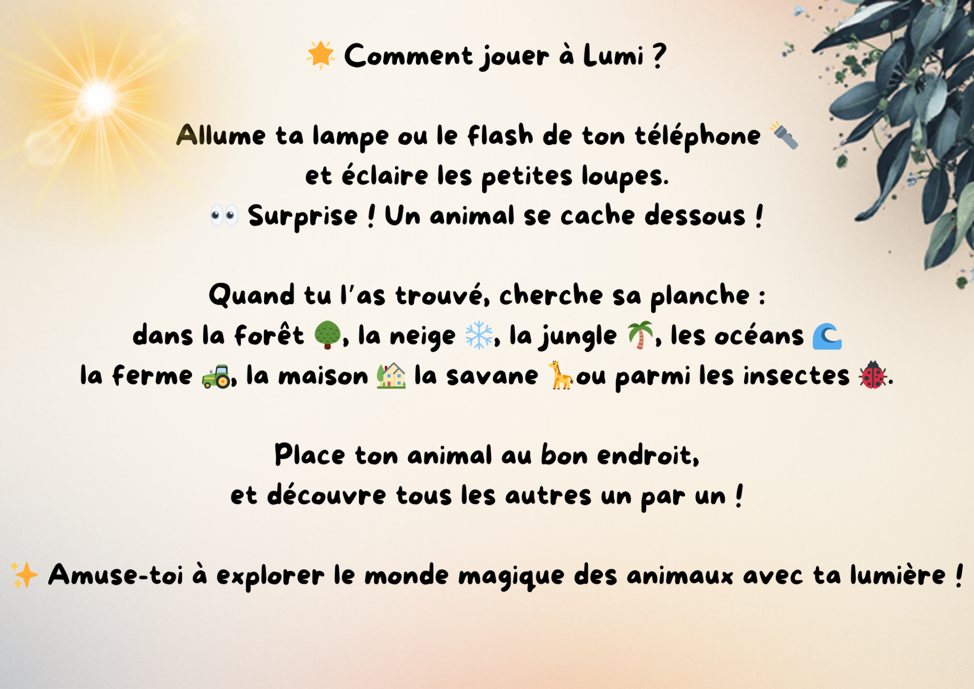 🔦 Lumi – Le jeu qui révèle les animaux cachés !