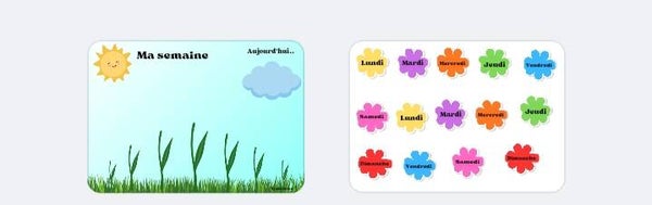 Offrez à votre enfant un outil ludique et visuel pour apprendre à se repérer dans le temps grâce à ce tableau “Ma semaine – Thème Espace & Fusées” ou fleurs 🌸