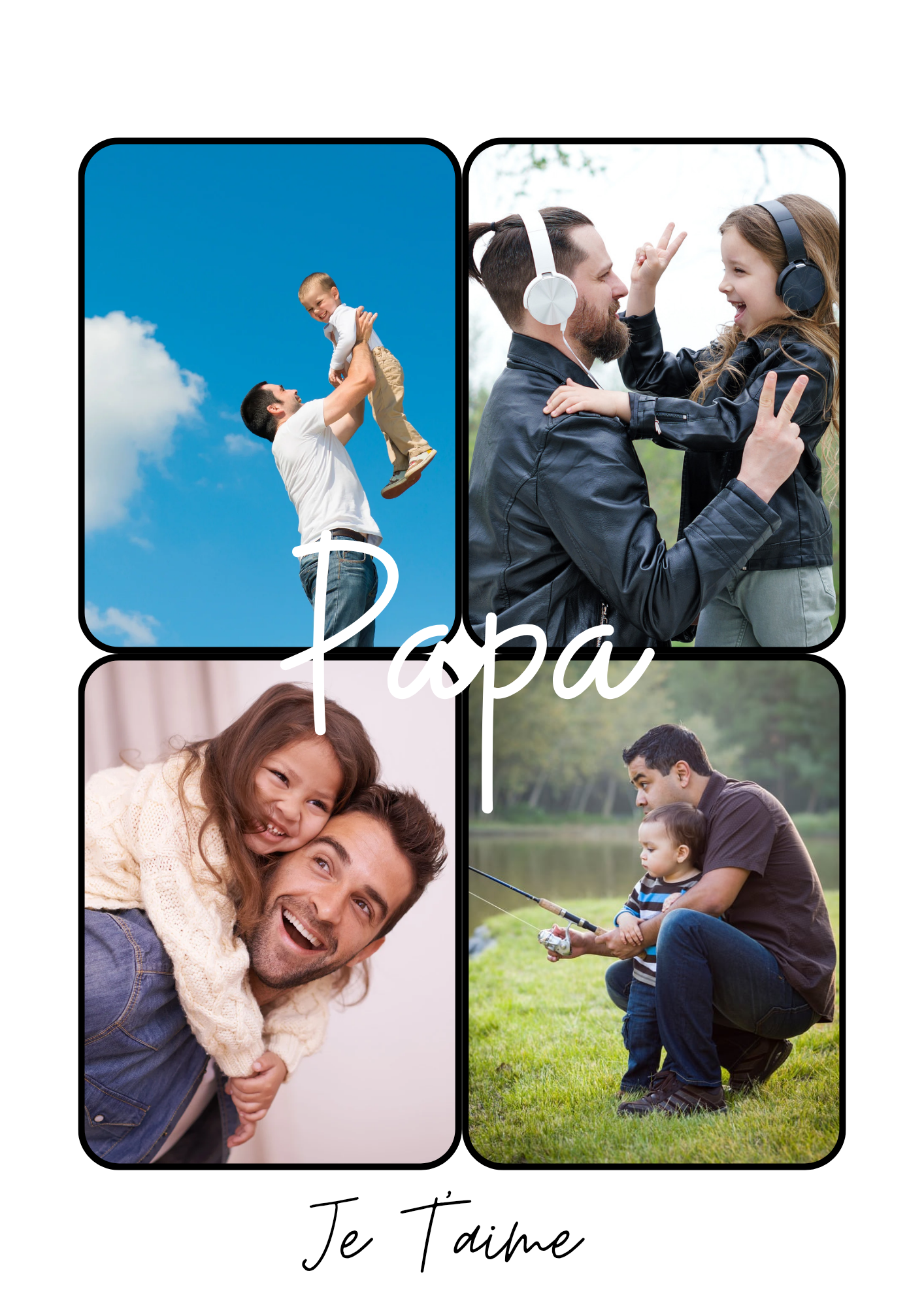 Choisissez le mot de votre choix – Maman, Papa, Mamie, Papi, Tonton, Tata, Parrain, Marraine ou même un prénom – et nous l’habillons de vos photos pour créer une décoration moderne, douce et pleine d’amour.